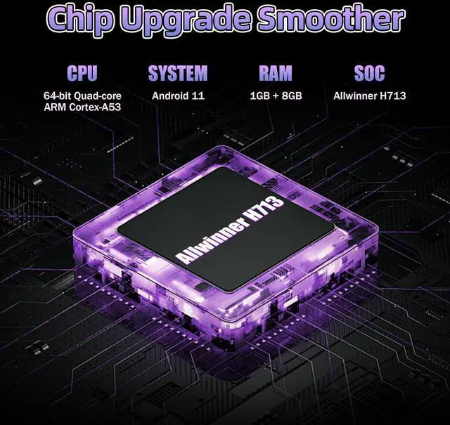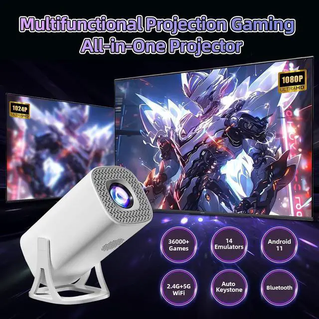 ANDROID 11 SYSTEM & ALLWINNER H713 QUAD-CORE PROCESSOR: This game projector runs Android 11, featuring an intuitive interface. Whether setting up projection or toggling to gaming mode, everything can be accomplished through a streamlined menu without complex configurations. This portable projector integrates the Allwinner H713 64-bit quad-core ARM Cortex-A53 processor, delivering significantly enhanced computational efficiency. Load HD videos or diverse games without lag, enjoying smoother graphics rendering