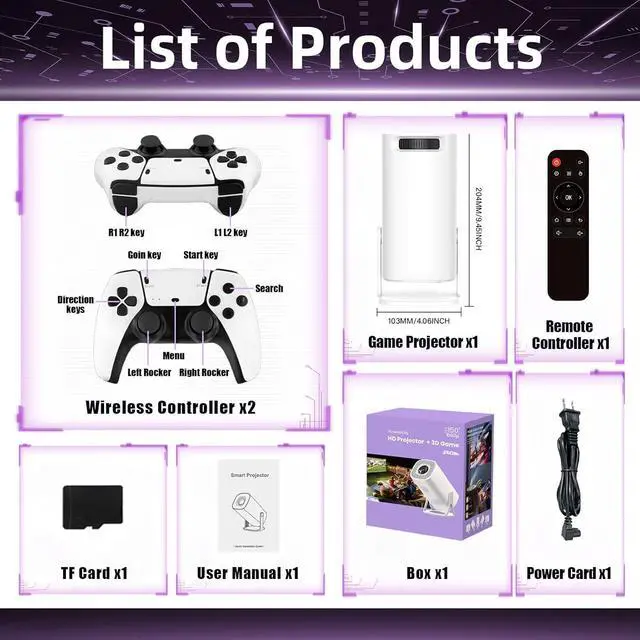36,000+ GAMES & DUAL WIRELESS CONTROLLERS: This outdoor projector comes preloaded with over 36,000 games no downloads required. Powered by support for more than 14 emulators, it delivers stable performance across many game without lag or delays.This projector with wifi and bluetooth also includes two wireless controllers, designed for ergonomic comfort and secure grip. These controllers deliver maximum precision, responding instantly to every button press and joystick movement