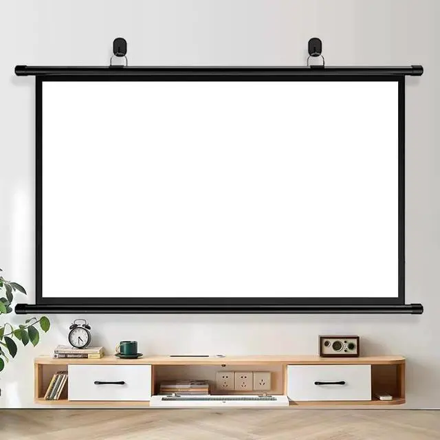 Material: The manually operated projection screen is made of high-quality white fiberglass, providing true color reproduction and excellent light-blocking performance. The screen surface is smooth, durable, and wrinkle-resistant.