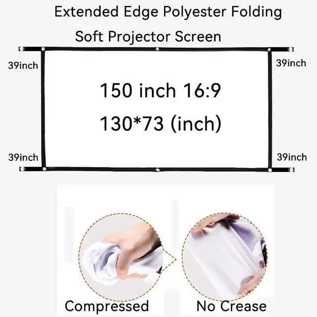 LARGE VIEWING AREA: 60inch 72inch 84inch 100inch 120inch 150inchfor 16:9 foldable projector screen provides an expansive viewing area ideal for home theaters and presentations.
