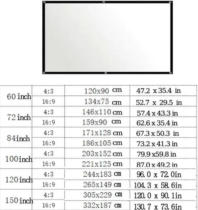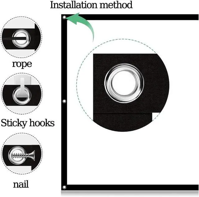 Package Includes: Projection screen ×1, rope, hooks, storage bag
