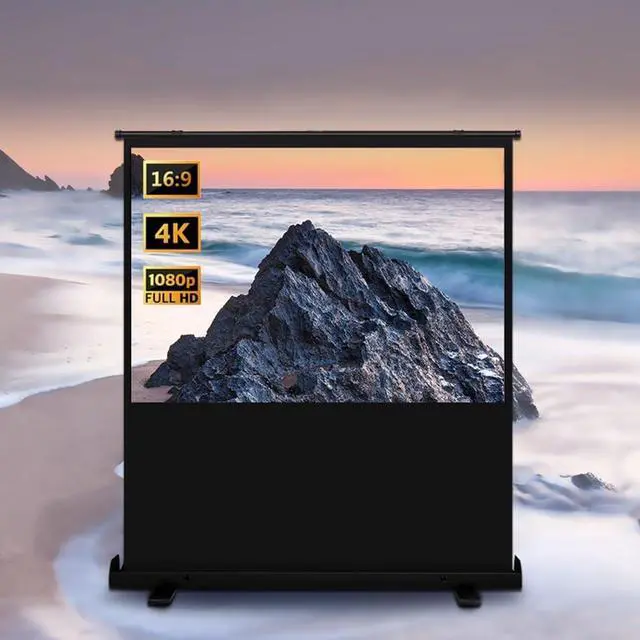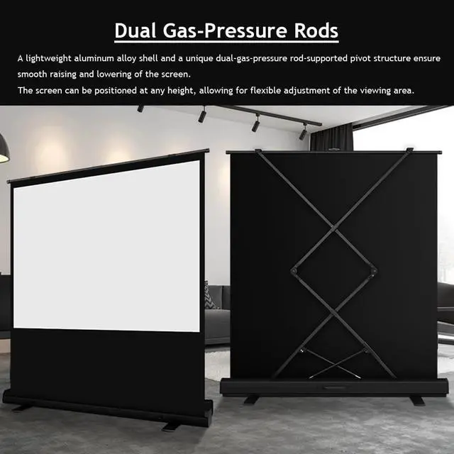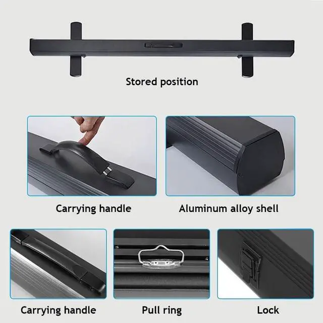 Simply Pull Up to Project: Compactly folds for easy single-person portability, setup, and removal. The lightweight aluminum alloy housing features a carry handle and a built-in hydraulic self-locking framesimply lift upward to unfold and secure the screen in seconds