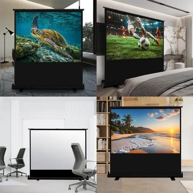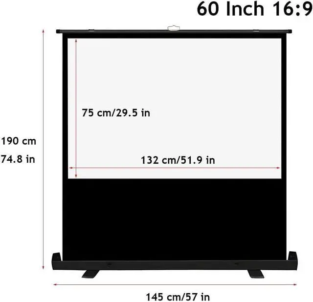 Projection Screen Sizes: 60/80/92/100-inch diagonal, 16:9 aspect ratio. Black backing eliminates bleed-through for brighter image fidelity