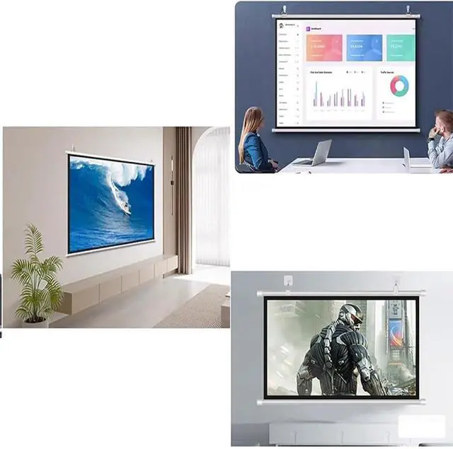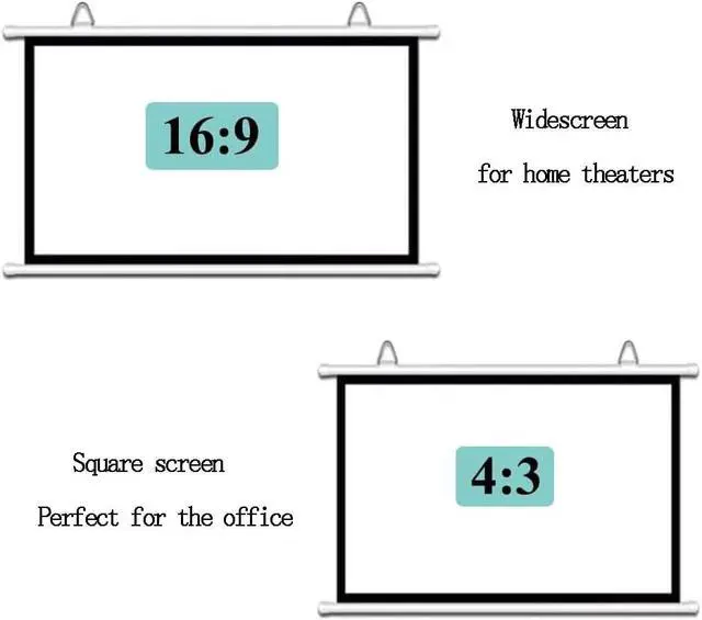 16:9 / 4:3 Screens: The 16:9 screen is narrower and more suitable for home theaters, watching movies, and TV shows. The 4:3 screen is more suitable for office work, teacher training, business presentations, and practical use.