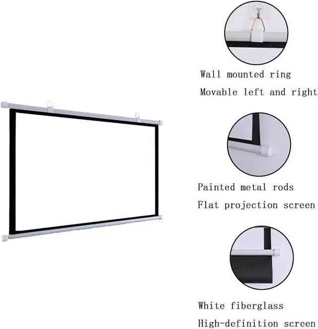 Manual pull-down projector screens are made of high-quality white fiberglass, with a smooth, wrinkle-free surface. The black border design prevents light from passing through the screen, enhancing overall image contrast.