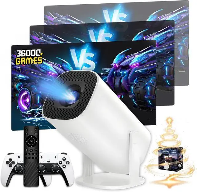 Auto Focus & Auto Keystone CorrectionThis console projector with retro games supports intelligent auto-focus and auto keystone correction. No manual adjustments are neededthis small projector with speaker auto-captures the image for sharp focus, delivering crisp visuals in seconds. Say goodbye to repeated adjustments. Even tilted (sideways or upward), it automatically corrects distortion for a perfectly rectangular picture. Elderly users and kids can master it quickly. Its an ideal gift for family/friends on birthdays, Christmas, New Year, Thanksgiving, Halloween, Valentine's Day, etc