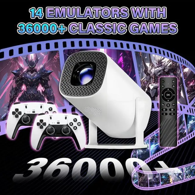Android 11 & 36000+ Games & 14 Emulators: This movie projector for bedroom is equipped with the Android 11 smart system and a dedicated gaming dual-function system, serving two purposes in one device. The home projector supports one-click changing for simple operation. The Android 11 system boasts fast boot speed and stable performance, allowing downloads of video, office, and social apps from major app stores. The gaming system comes preloaded with over 36,000 games and 14 categories of mainstream game emulatorsno additional downloads needed, just power on and play