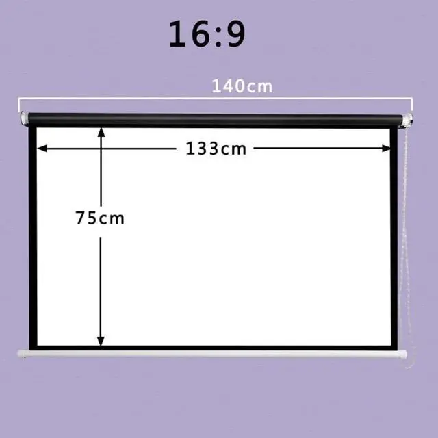 Portable Projection Screen Manual Drop Down Projection Screen Roll Up Movie Screen Home Theater Office Screen(16:09)