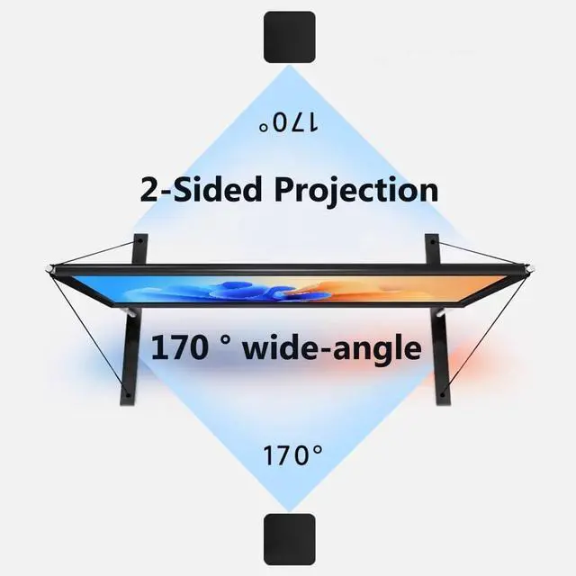 2-Sided Projection: The screen supports front and rear projection, is not limited by space, and has a wide viewing angle of 170°, so you can see clear and bright pictures from any angle