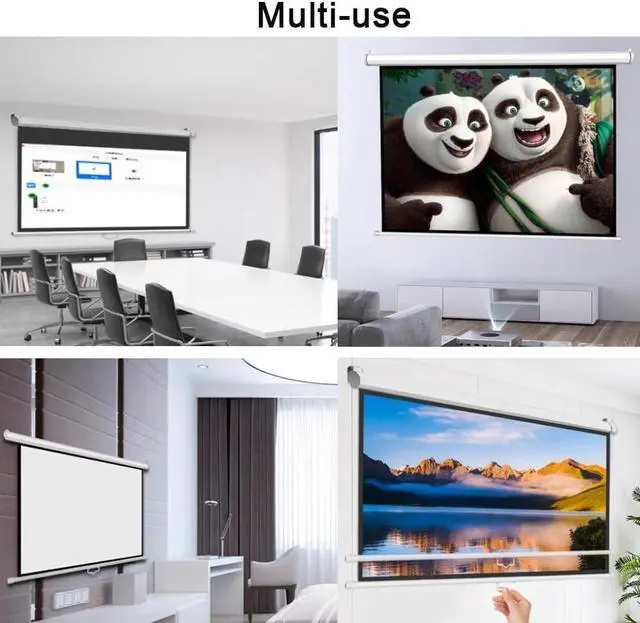 Manual Pull down Projection Screen: auto-locking design, simply pull it down and lock it to the desired height. When you want to retract it, release the latch to allow the screen to retract into the casing.