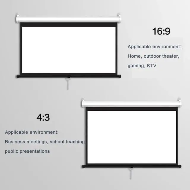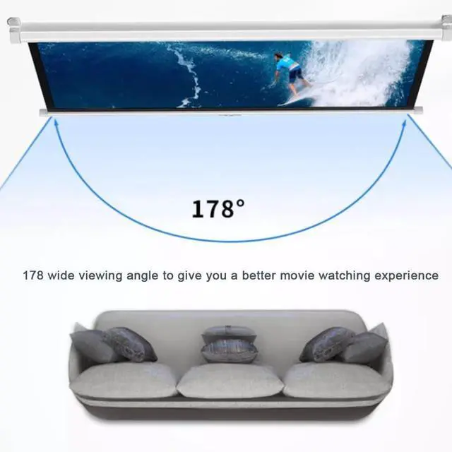 Installation: The manual pull-down projector screen can be quickly installed in a few minutes. You can easily install it on the walls and ceilings of your home.