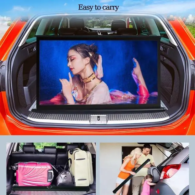 The retractable movie screen is equipped with a quick-pull system, allowing the screen to move up and down freely; the integrated storage design is lightweight and easy to store.