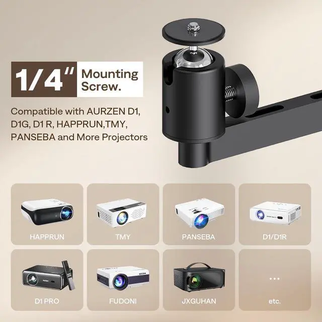 Universal 1/4 Thread & Broad Compatibility: Standard 1/4 mounting thread works with most projectors, DSLRs, ring lights, webcams, LED video lights, microphones, etc. Compatible with TMY, HAPPRUN, Yaber, Epson & Most Projectors.
