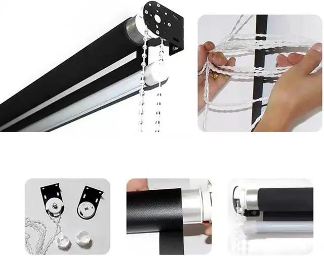 Installation. Fix the screen on the wall with nails, install the crossbar and crystal beads, and then pull down the screen to use directly. It can be put away after use, saving space.