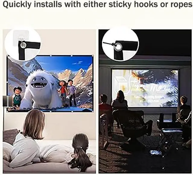 Easy Installation: Hang it up and let the show begin! Our outdoor projection screens come with hooks and cords for quick and easy installation. Simply find a suitable spot, hang it securely, and enjoy your favorite movie under the stars.