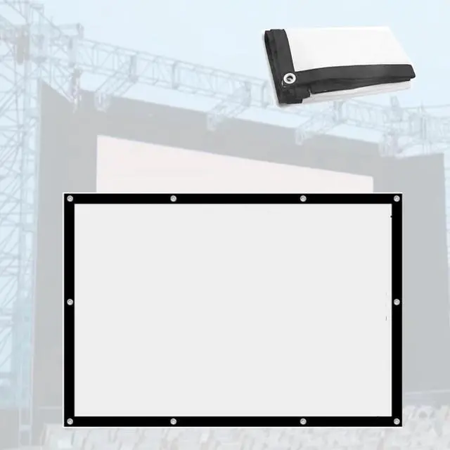 The portable foldable projection screen is lightweight and easy to carry. It is foldable, comes with a rope and a storage bag, and is simple and convenient to set up, with holes around it for easy hanging.