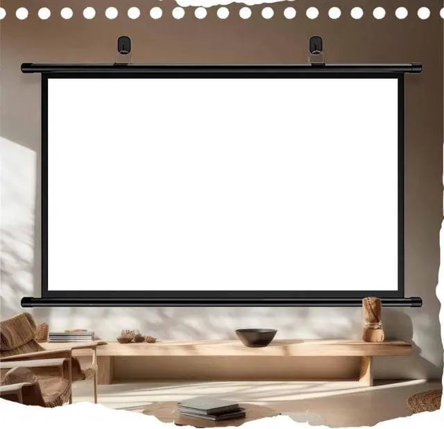 High-Quality Material: The manual pull-down projection screen is made of white fiberglass material, enhancing light reflection and providing a uniform and clear image. The screen is surrounded by a black blackout border, boosting contrast and immersion, making images sharper and more vivid.