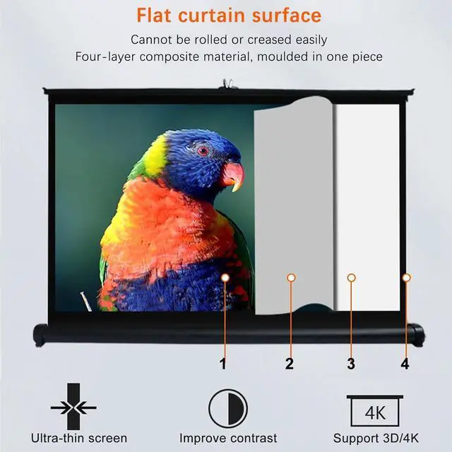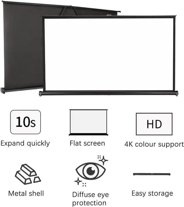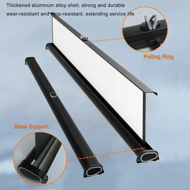 ?Floor-mounted projector screen desktop screen, cross support stable structure, can be stretched and stored as needed, can remain stable and firm for a long time, not easy to shake.