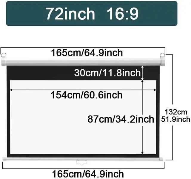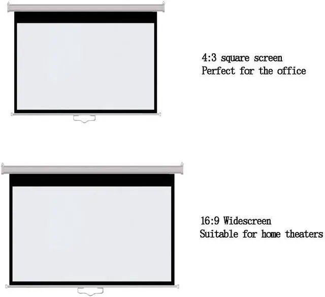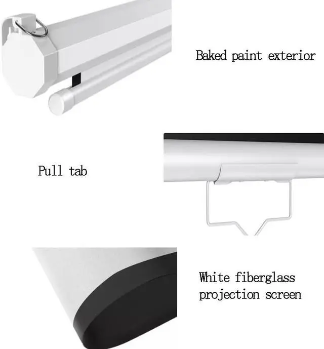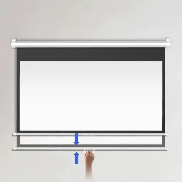 The hand-pulled self-locking projector screen is made of white fiberglass, offering high brightness, clear image quality, and durability. The upper and lower rods keep the screen flat without wrinkles.
