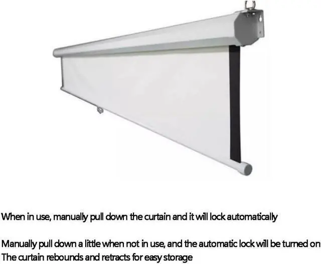 The portable projector screen is equipped with a convenient auto-lock mechanism. You can manually pull it down to the desired height, and when not in use, a gentle downward pull will automatically unlock it, allowing the screen to roll up.