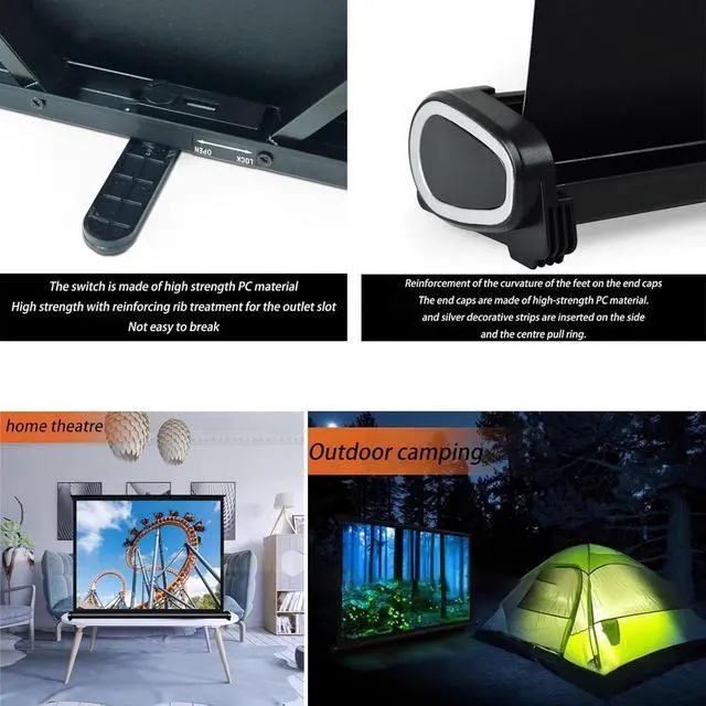 Portable Projector: The screen is equipped with a C-shaped pull ring + swivel support angle. Easily pull it up and raise it to a suitable height. It is portable and suitable for both indoor and outdoor use.