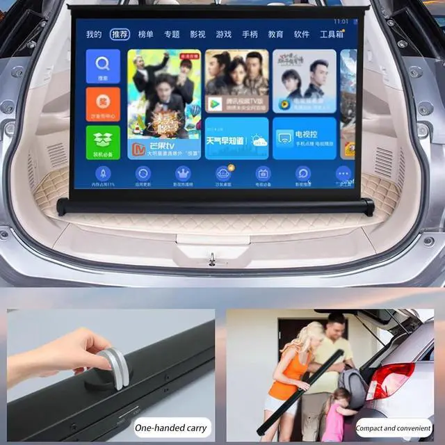 Video projection screen, portable storage, roll storage, does not take up space, is very convenient to unfold and store, enjoy high-definition picture quality while using, and can be easily stored after use without taking up extra space.