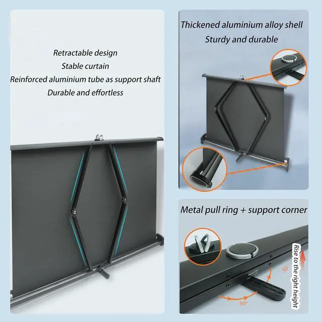 Desktop Projection Screen: The screen is made of white fiberglass with lifelike color reproduction, and the black border collects more light, providing a high-resolution viewing experience.