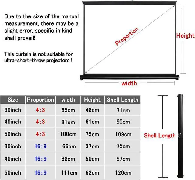 Widely adapted to various scenarios: The mobile desktop projection screen provides mainstream 4:3 and 16:9 ratios and 30/40/50 inches size options, which are perfectly suitable for home entertainment, office teaching, wedding celebrations, outdoor camping and other occasions.