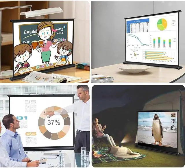 High-Quality Picture: With high picture quality and excellent light resistance, the retractable desktop movie screen can provide clear 4K high-resolution images with rich colors and protect eyes from fatigue.