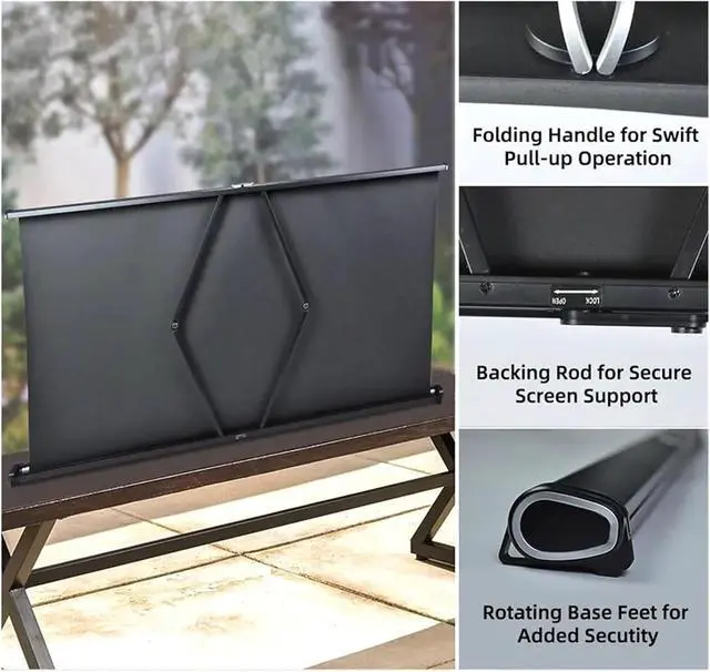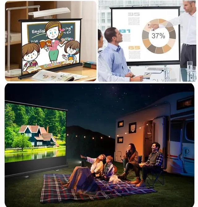 Portable screen: can be easily placed on any flat surface, the base is stable, and the self-standing pull-out design is easy to store. It is easy to carry when going out.