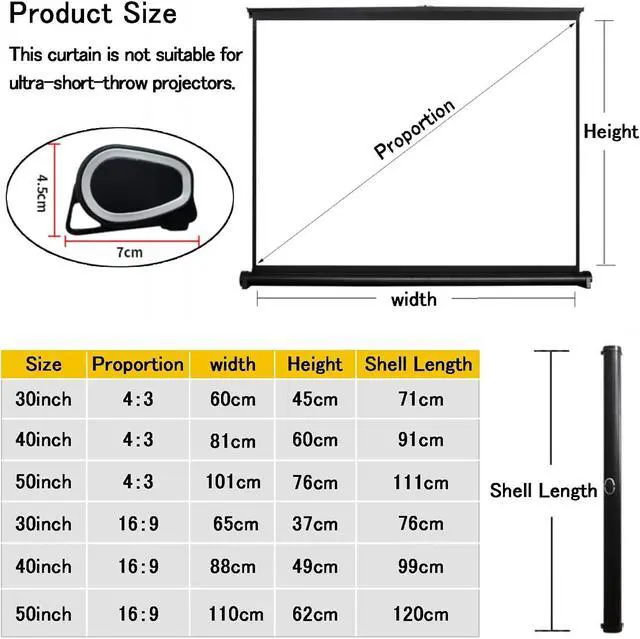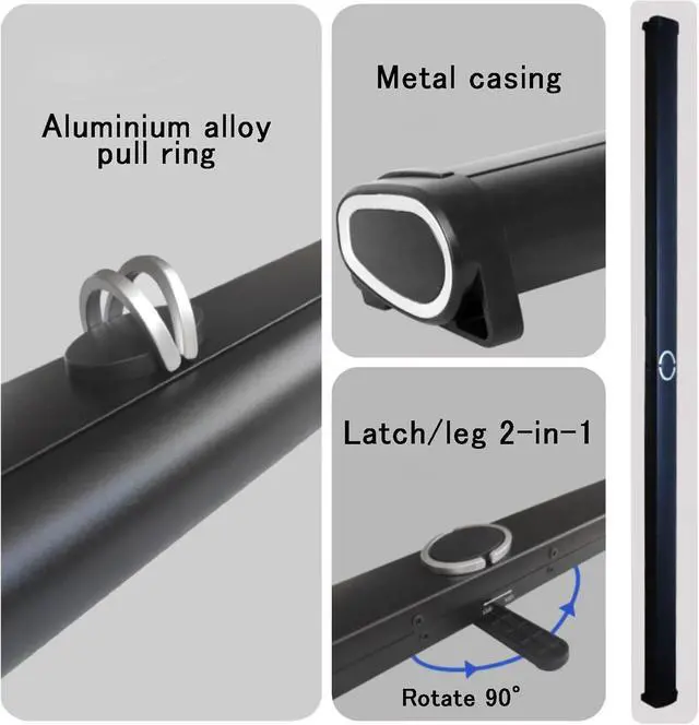 Expandable: the portable projector screen can be manually pulled to shrink quickly, saving time and effort, hold the middle of the bottom case with one hand and pull the top metal pull ring to install it in the right position.