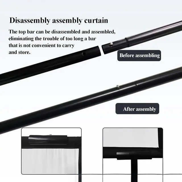 Disassembled Curtain: The top crossbar can be disassembled and assembled, eliminating the need for long poles that are inconvenient to carry and store, and it is easy to put it away when it is glued, with sticky hooks, so it can be used anywhere on just one wall