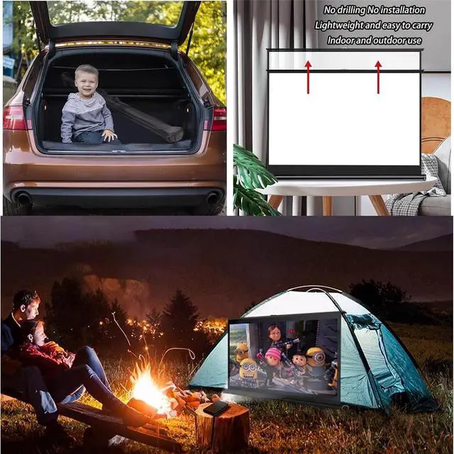 Easy to carry: The mobile projection screen is light and compact. When not in use, it can be folded into a slim shape, which is easy to carry and store without taking up space. Retractable design, easy to use.