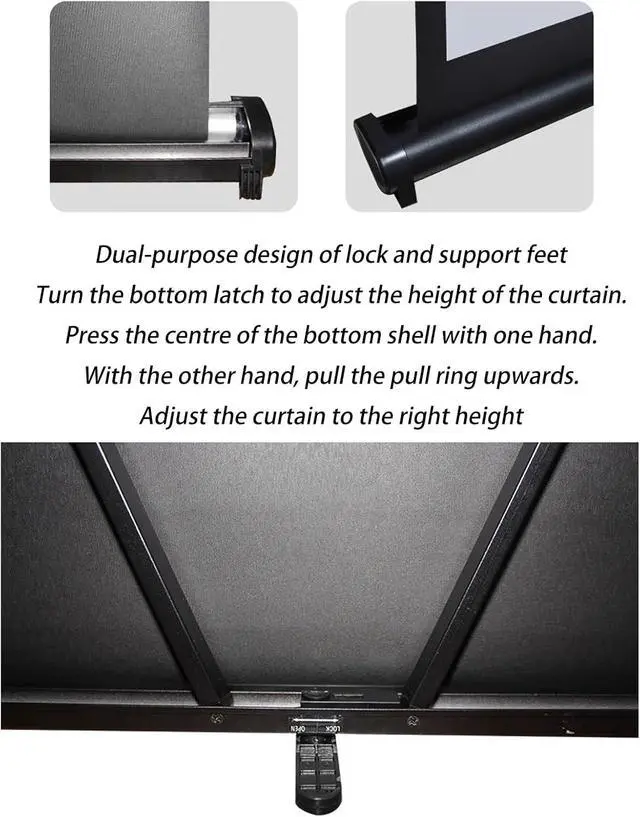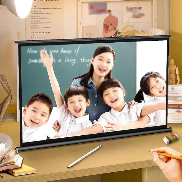 High-quality projection screen: The projection screen shell is sturdy, compact and beautiful, and the supporting feet at the bottom ensure that the screen operates stably on a flat surface or desktop.