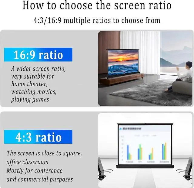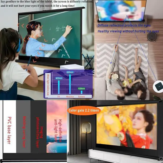 Better Picture Effect: Floor Projector Screen adopts high-quality curtain material with special coating, the color gain can reach 2.2 times, which can effectively improve the brightness of the screen, and at the same time, it has high resolution, good color reproduction, strong sense of color hierarchy, which can present clear and realistic projection picture.