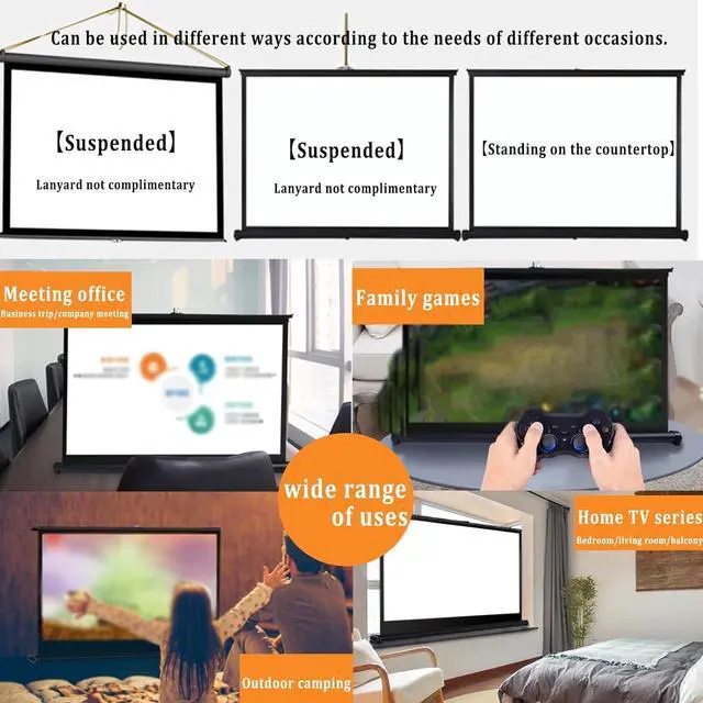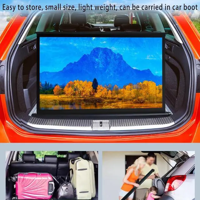 Good Portability: Small and flexible, can be easily stored into the box, small size and light weight, easy to carry, 16:9 4K HD Rear Front Movie Screen suitable for mobile use in different places.