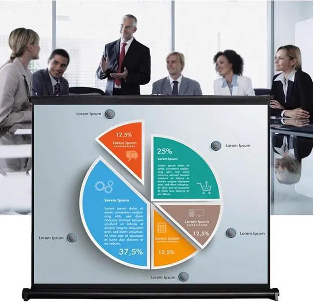 Desktop projection screen: The screen is equipped with a quick pulling system, which takes only a few seconds to pull the screen up or down, which is very convenient and user-friendly.