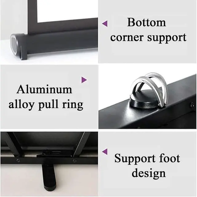 Suspended and floor-standing dual-useThe projection screen has two usage modes: hanging and floor-standing, and can be easily installed according to the usage scenario. In addition, the lock switch becomes an independent bracket, so it can be used in a variety of situations.