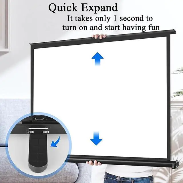 No assembly requiredThe installation of the projection screen only requires placing it on the ground to unlock it and opening it up and down, and it can be used. Since it is rollable, it can be easily and neatly stored. You can use the pantograph to freely adjust the height of the screen.