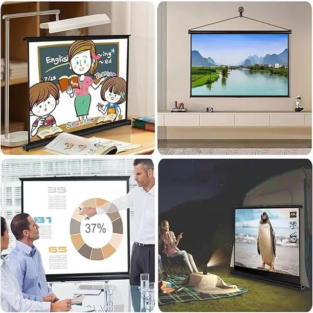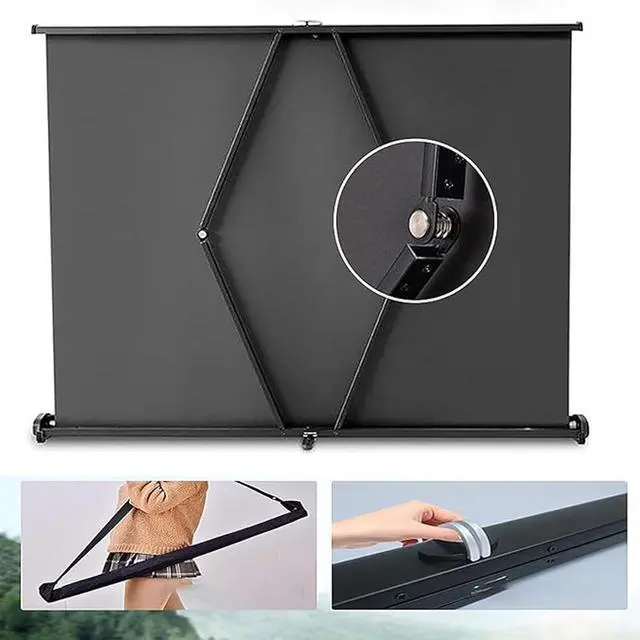 Can be carried with youAll the storage boxes on the surface are convenient for you to carry when you go out. You can store the video projection screen and put it in a backpack or suitcase and carry it with you. This roll-up screen can be pulled out manually and used only when needed. When not in use, it can be rolled up and stored neatly, without taking up room space and affecting use.