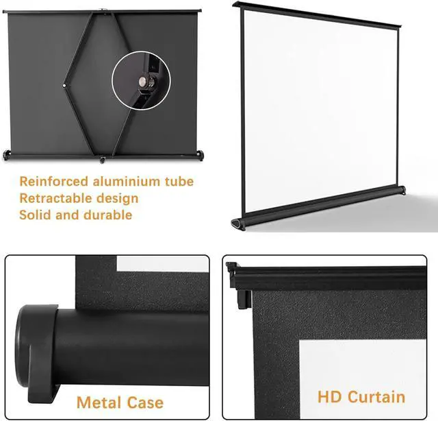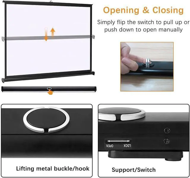 Strong Frame: Home cinema screen projection curtain, using reinforced aluminium alloy tube as support, stable and durable, manual pull-up design, bottom locking bracket, increase stability.