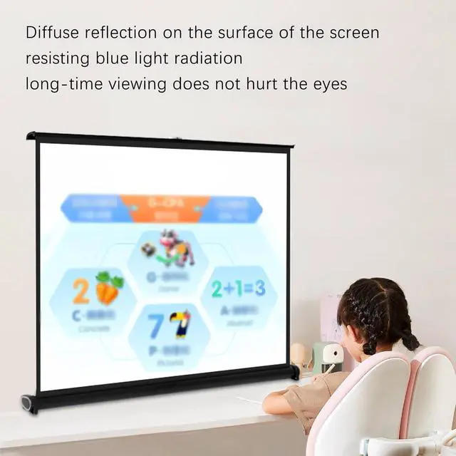 Diffuse Reflection Eye Protection: Desktop projector curtain, diffuse reflection imaging principle makes the projection evenly scattered, the light is soft and eye-friendly, will not shoot directly into the eyes.