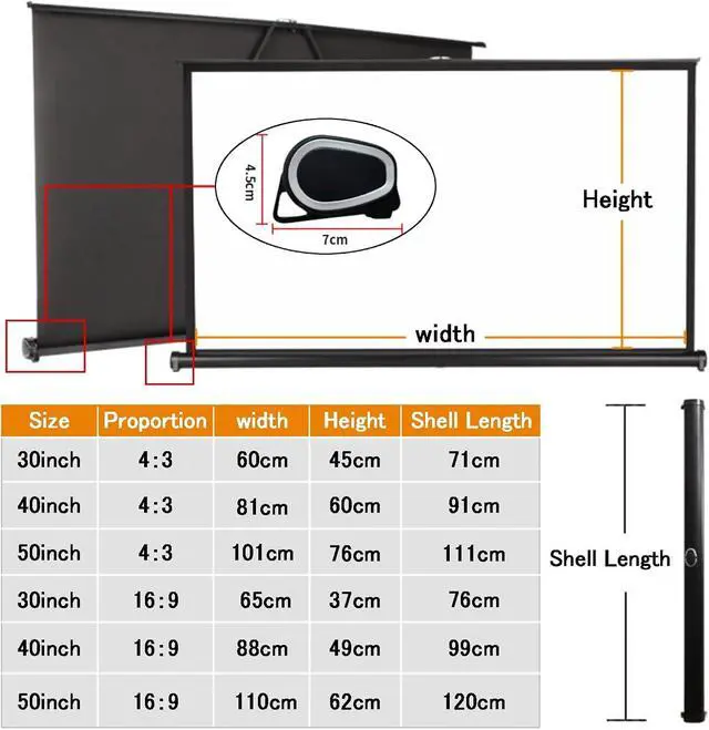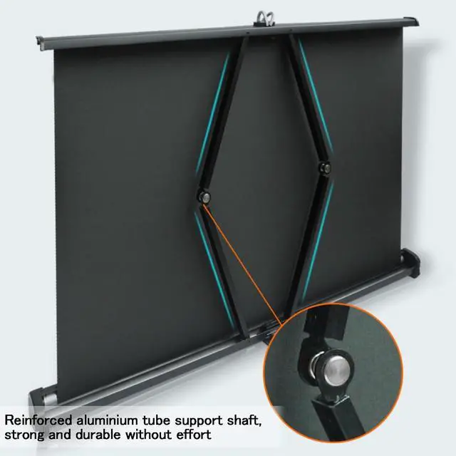 Portable projector screen with aluminium metal casing, sturdy and durable, the back has a double aluminium tube made of stable structure, suitable for long-term use.