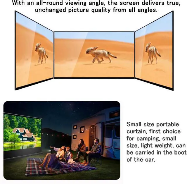 Video projector screen, lightweight, portable and retractable, perfect for camping, travelling, recreational activities and more, enjoy indoor and outdoor movie nights.