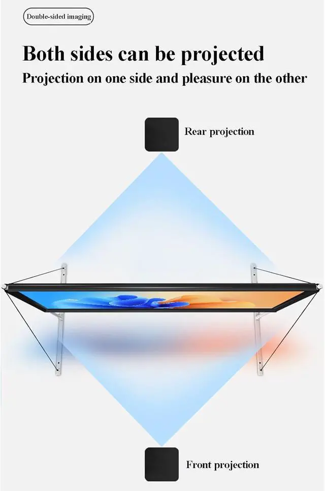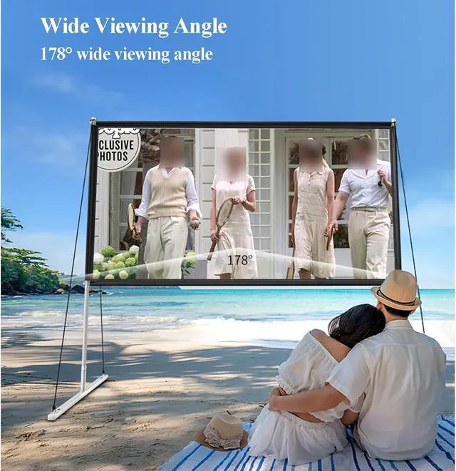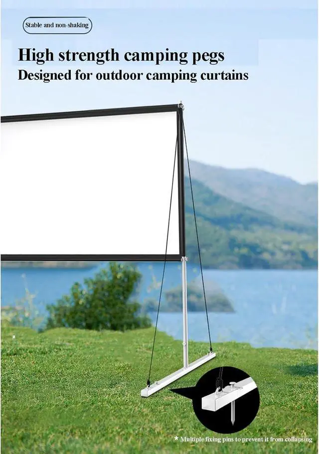 WIDE APPLICATION This portable projector screen is suitable for kinds of scenes such as camping parties, public areas, and outdoor backyard theatre, and you can also hang and stretch it on the wall for indoor use