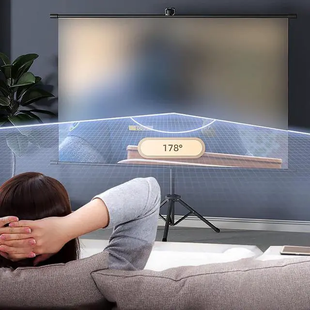 178°Wide Viewing Angle: The floor-standing projector screen has a large viewing angle of 178 degrees, no need to sit in front of the screen when watching movies. Suitable for home movies, presentations, games or movies.