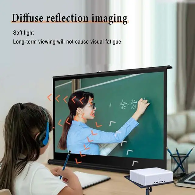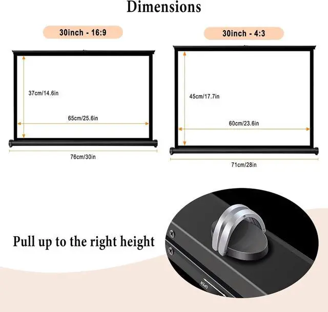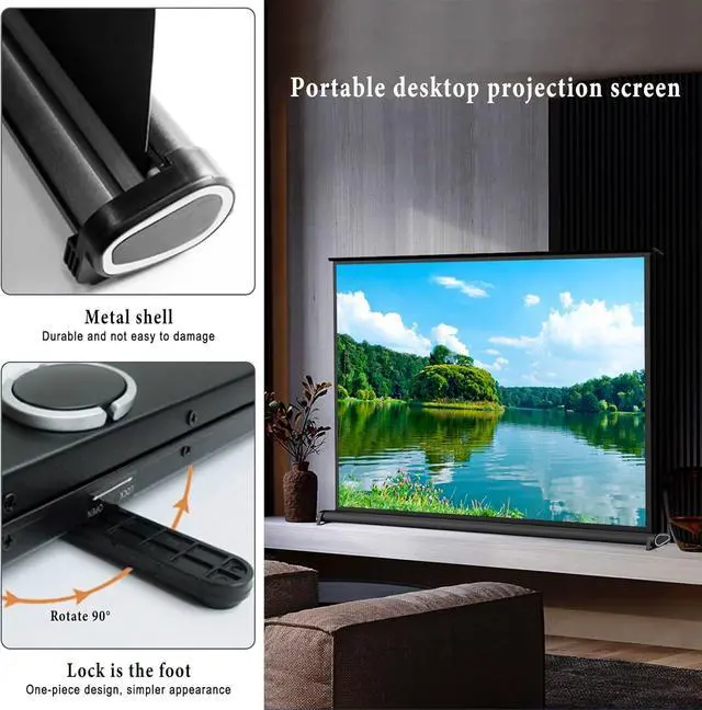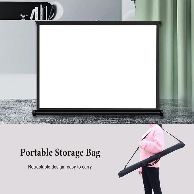 Made of thickened fiber fabric, high brightness gain and strong light absorption rate both help enhance image brightness, color saturation, contrast and fidelity, the screen surface is flat and not easy to wrinkle, the metal shell enhances durability, C-shaped pull ring, easy to unfold and store, with a storage bag, you can put it in the trunk of the car, carry it when traveling, small size, light weight, even one person can use it at any time, very suitable for indoor and outdoor scenes such as living room, bedroom, camping