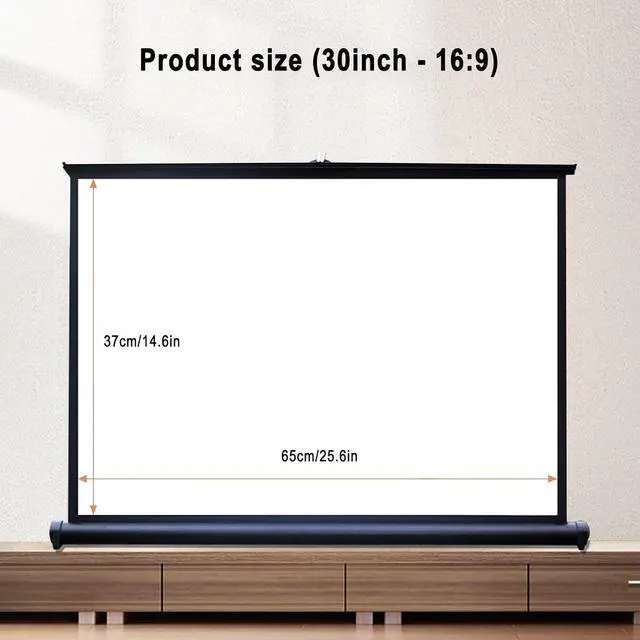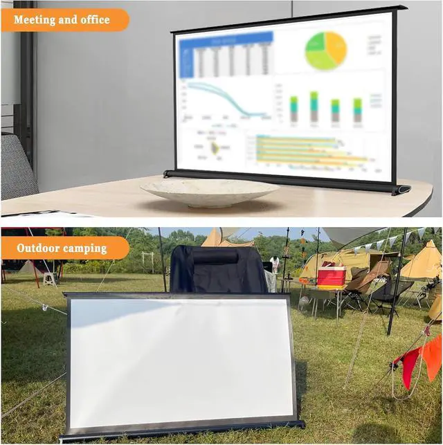 Multi-functional use: Retractable Table Top Projector Screen, Roll Down Movie Screen for Gaming Indoor, 16:9/4:3 two screen ratios, 16:9 is rectangular in size, suitable for small meetings, product demonstrations, education and teaching, etc., 4:3 is square in ratio, suitable for watching movies, games, outdoor camping, etc.