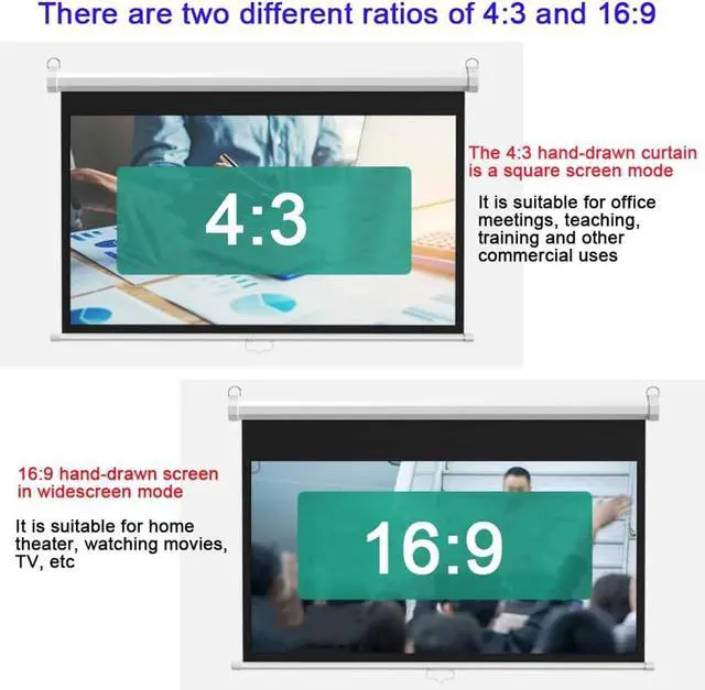 Different ratios: 4:3 and 16:9 have two different ratios, 4:3 is suitable for office meetings, teaching and training, business, etc.; 16:9 is suitable for home theater, watching movies, and TV