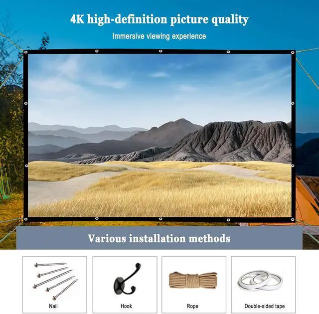 Compact storage: With a compact one-piece shape and lightweight folding design, the screen can be folded and put into a backpack or suitcase, which is very suitable for use on the go, and you can enjoy the fun of watching movies anytime, anywhere
